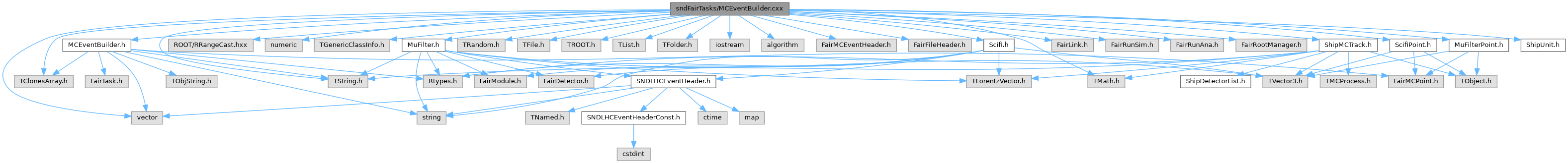 #include "MCEventBuilder.h"#include <ROOT/RRangeCast.hxx>#include <numeric>#include <TClonesArray.h>#include <TGenericClassInfo.h>#include <TMath.h>#include <TRandom.h>#include <TFile.h>#include <TROOT.h>#include <TList.h>#include <TFolder.h>#include <iostream>#include <algorithm>#include <vector>#include <TString.h>#include "FairMCEventHeader.h"#include "FairFileHeader.h"#include "MuFilter.h"#include "Scifi.h"#include "FairLink.h"#include "FairRunSim.h"#include "FairRunAna.h"#include "FairRootManager.h"#include "MuFilterPoint.h"#include "ScifiPoint.h"#include "ShipMCTrack.h"#include "ShipUnit.h"